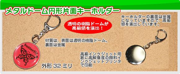メタルドームタイプの円形片面キーホルダー